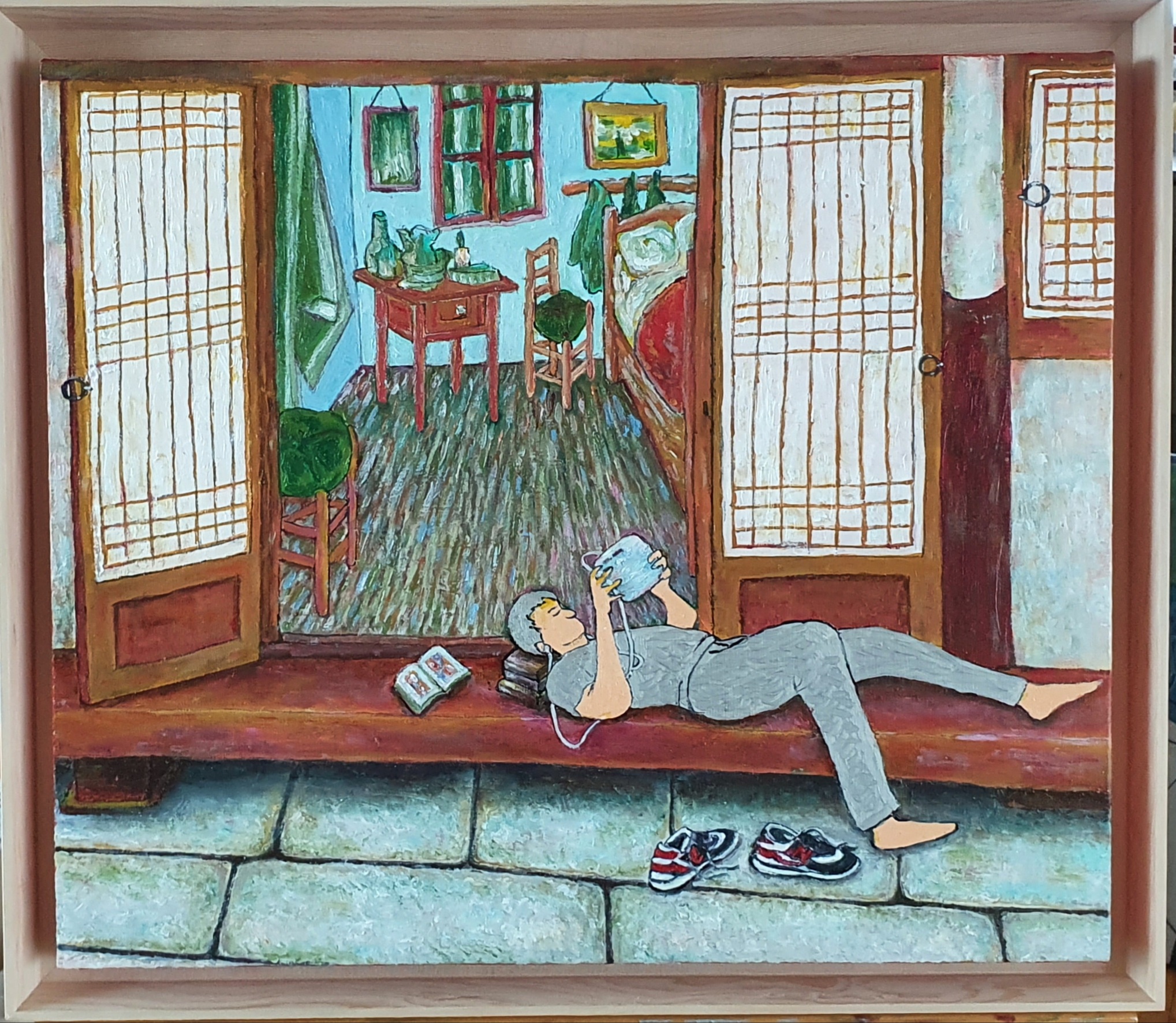 스마트폰 화면 속 그림일기 쓰듯 구현한 작품을 통해 코로나19 팬데믹을 겪고 있는 이 전쟁 같은 시대의 일상 모습과 명화와의 독특한 소통과 해석을 시도한다.